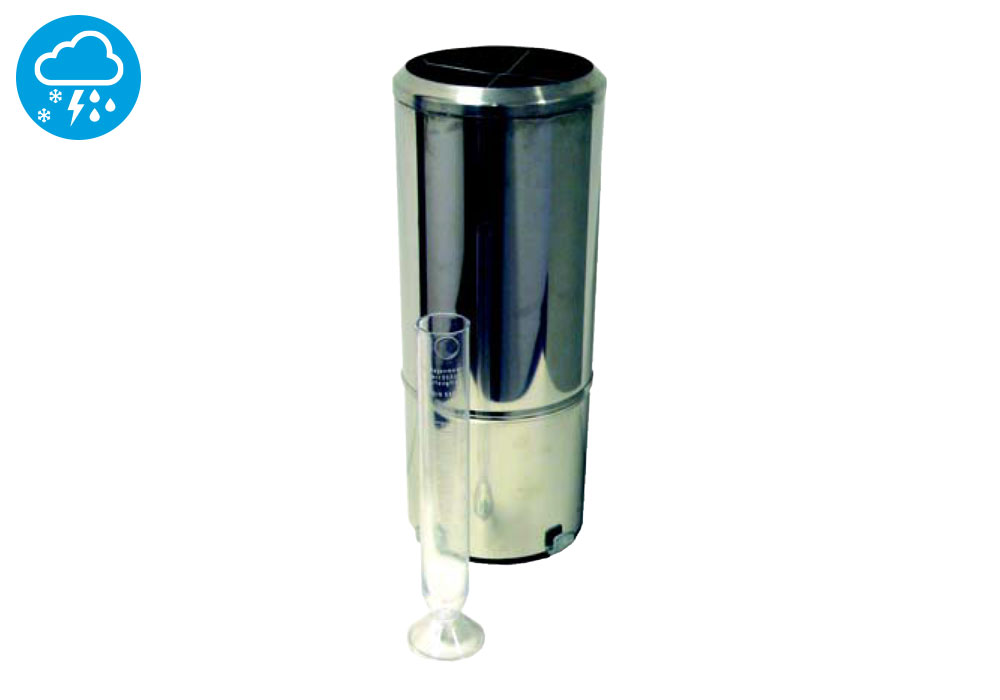 Rain gauge with 200 cm² circular collecting area (WMO standard), made of stainless steel.